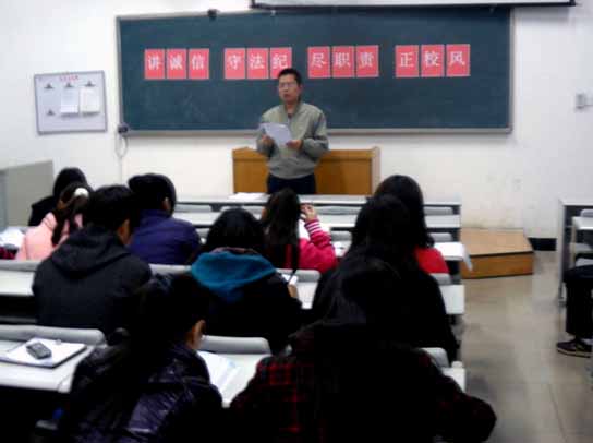 11月18日下午,公司在6104教室召开“讲诚信、守法纪、尽职责、正校风”的主题教育动员大会,辅导员张文科老师做主题动员讲话。全体员工党员、员工会干部、各班班团干部以及公司党校结业学员参加会议。