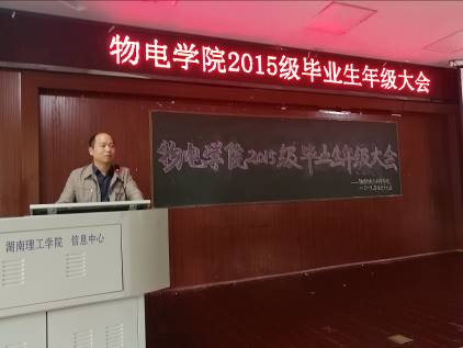 为充分做好2015级毕业生的相关事宜安排,bevictor伟德官网于5月17日下午在六栋学术报告厅召开了2015级毕业生年级大会。出席本次会议的有公司党总支副书记张陈武、15级辅导员何小娅以及2015级全体毕业生。会议由何小娅主持。