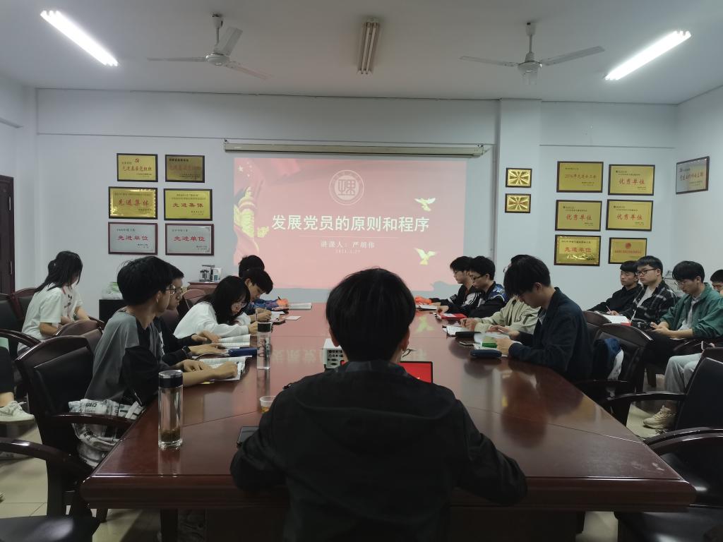 课上,严胡伟基于党章,从入党积极分子的确定和培养教育、发展对象的确定和考察等多个方面介绍了成为一名正式党员的原则和程序,为入党积极分子明确了今后的努力目标和发展方向。