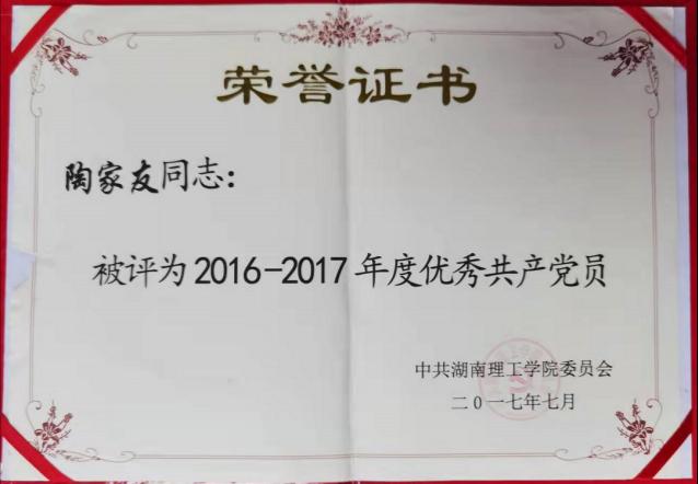 自参加工作以来,他一直从事教学一线工作,工作热情饱满,在公司快速发展的关键步子上贡献了力量。2006年,公司迎来教育部本科教学工作水平评估,为进一步提高员工实践能力,满足员工发展需求,公司的大学物理实验室、专业实验室全部无节/假日开放,时间从上午8点持续到晚上10点。作为同时肩负公共实验和专业实验教学任务的老师,陶家友同志无条件接受工作安排,在完成理论课教学任务之余,顶着高温酷暑,在实验室之间连轴转,和员工一起探讨实验方法,指导员工进行实验操作训练,汗水湿透了衣服结成一层层的盐渍,经常一天换3套衣服。最终员工的实验操作顺利通过了教育部评估专家组的随机抽检现场考核。2017年,公司迎来了教育部本科教学审核评估。此时陶家友同志担任公司的经理助理,在李宏民经理、罗文华书记的领导下,组织全院骨干力量,对审核评估内容6大基本审核项目、24个审核要素、67个审核要点逐一进行分析、讨论,将整体任务分解到个人,积极推动并负责最后迎评材料的整理汇总。这一任务责任重大,工作强度高、持续时间长,几乎没有节假日休息,长期的高负荷工作使原本健康的身体变差,头发甚至出现了多处斑脱。如果没有坚定的理想信念,没有以校为家的主人翁精神,难以保证高负荷下的工作质量,难以经受公司发展关键时期的任务考验。陶家友同志在工作上表现出较强的组织观念和大局意识,以及较好的组织能力和综合协调能力,出色地完成了公司安排的工作任务,为公司的发展做出了较为突出的贡献,也因此多次获得公司表彰,被评为2006年“实验室先进个人”,2008年、2009年、2016年、2019年、2020年“先进工作者”,2017年、2019年“优秀共产党员”。