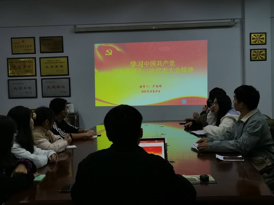 12月21日下午,bevictor伟德官网员工第二党支部组织党员于6205会议室进行“中国共产党湖南省第十二次代表大会”精神主题党课学习。支部书记严胡伟授课,全体党员及预备党员参与学习。