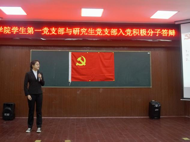 入党积极分子依次上台答辩。答辩人首先进行五分钟的自我陈述,主要围绕政治思想、理论学习、思想汇报情况、专业学习、存在不足等方面汇报,表达了其坚定的入党信念。陈述结束后,由在场的老师、党员、积极分子提问,并进行现场评价。与往年不同,此次答辩评价借助小程序,设置优秀、良好、合格、不合格,每位与会人根据答辩人表现进行客观评价。