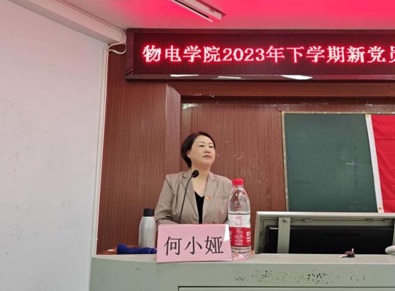 宣誓结束后,新党员代表徐丽娜发言,表示党员是一种荣耀,更是一种责任,要把入党誓词作为自己终身的追求,听党话跟党走,不负党的殷切期望。最后她呼吁全体党员团结一心,共同努力,为实现党的使命而不懈奋斗。