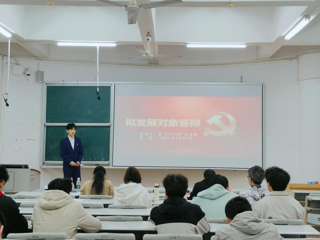 答辩会在庄严的国歌声中正式开始。27名入党积极分子依次围绕个人基本情况、入党动机、党性实践锻炼及对党的理论认识等方面进行5分钟陈述。评委根据答辩内容进行针对性提问,答辩人现场作答。每组同学完成答辩后,评委和现场人员为每位答辩人评分。