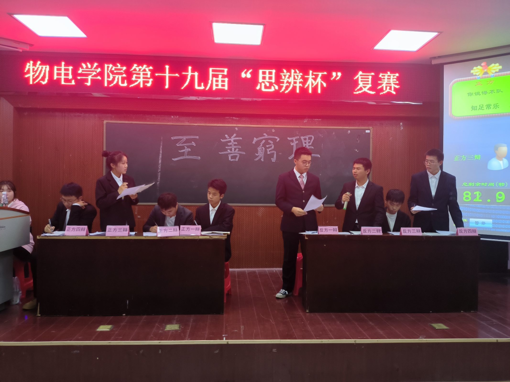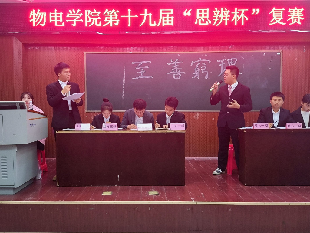 暗淡了刀光剑影,抡起了唇枪舌战。11月9日晚,bevictor伟德官网第十九届“思辨杯”复赛于在学术报告厅顺利举行。此次比赛由物电团学分会学术科研部承办,特邀bevictor伟德官网现辩论队教练阳佩,队长王嘉豪以及部分队员出任评委,初赛晋级四强队伍参赛。