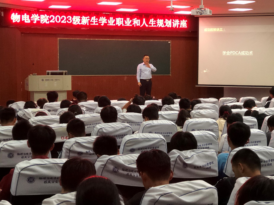 10月11日晚,公司在南院6号教学楼学术报告厅举行题为“做成功的自己”报告会。公司邀请湖南天欣集团总经理邓兵主讲,辅导员熊彦淇及全体2023级新生参加,公司党委副书记李科敏主持。