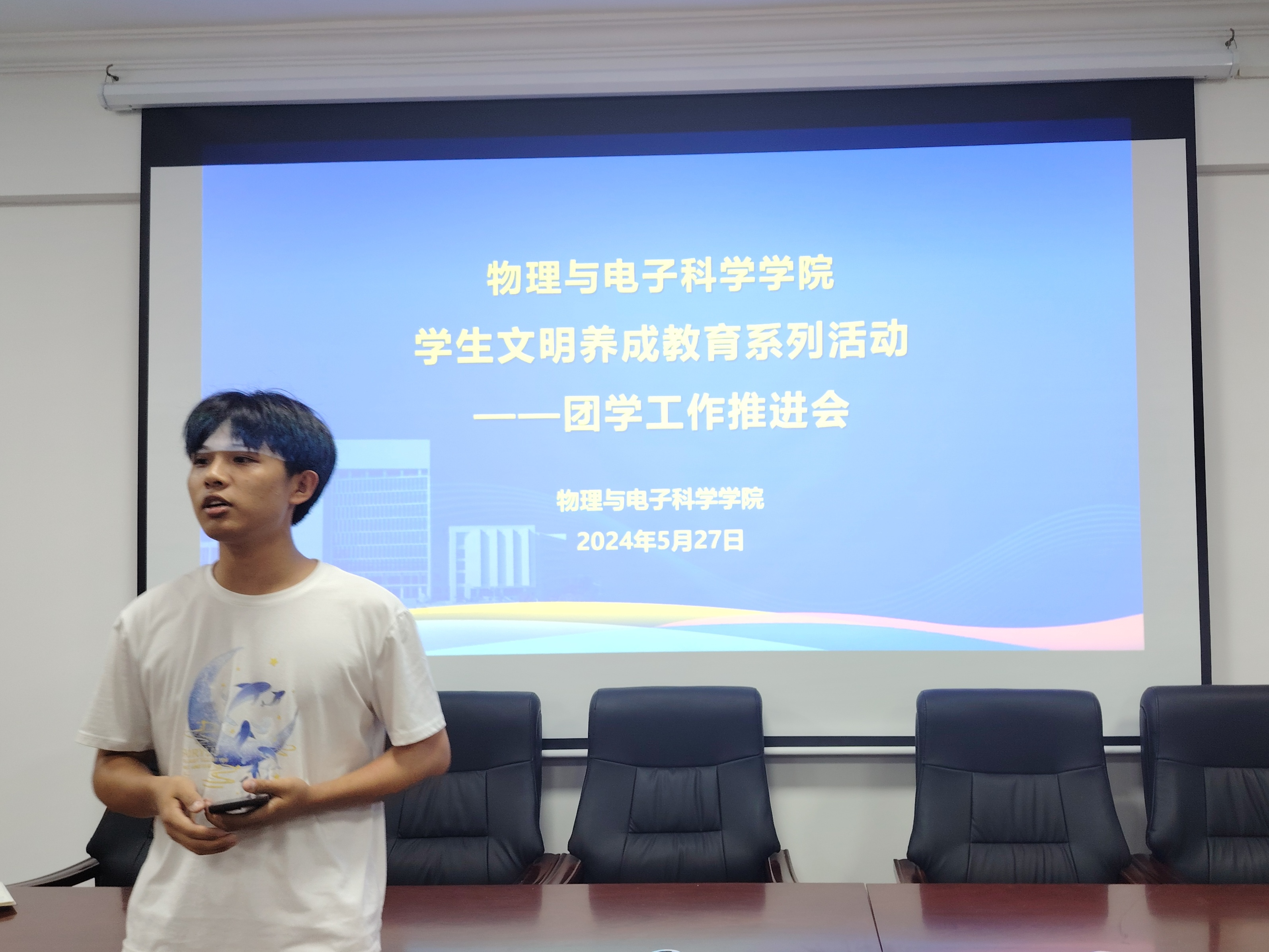 会上,团学分会各部门介绍了本学期后阶段将要开展的工作,以及需要各班班委和同学们配合的注意事项。