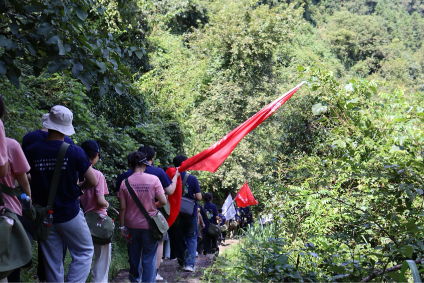 山路崎岖不平,碎石遍布。刚开始大家还能保持整齐队形,随着路程推进,汗水逐渐浸透衣衫,呼吸也变得急促起来。“同志们加油!”领队老师的一声呼喊,让成员们精神为之一振。大家自发地唱起了《强军战歌》,歌声在山谷间回荡。在最难行的一段陡坡上,队员们前后相接,手拉着手向上攀登,重现了当年红军战士共克艰险的感人场景。
