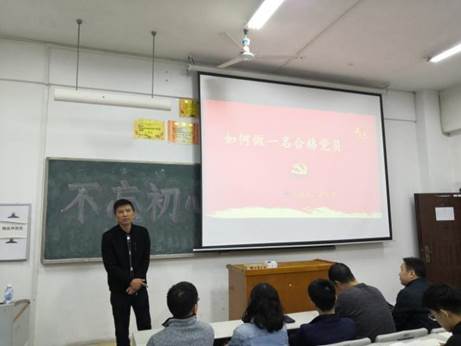 (通讯员 许若言)2019年10月25日晚,bevictor伟德官网总支书记罗文华老师为公司全体师生党员、入党积极分子讲授党课。本次党课以“如何做一名优秀的党员”为题。
