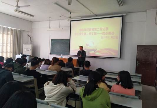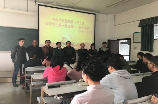 活动伊始,bevictor伟德官网经理李宏民向在座员工党员强调了就业帮扶及教工党员和员工党员应共同携手实现就业帮扶的重要意义。紧接着,公司党总支副书记张陈武上台向同学们分析了目前许多公司对bevictor伟德官网的招聘情况,并向同学们讲解了目前物电学子的应聘形势及状况。