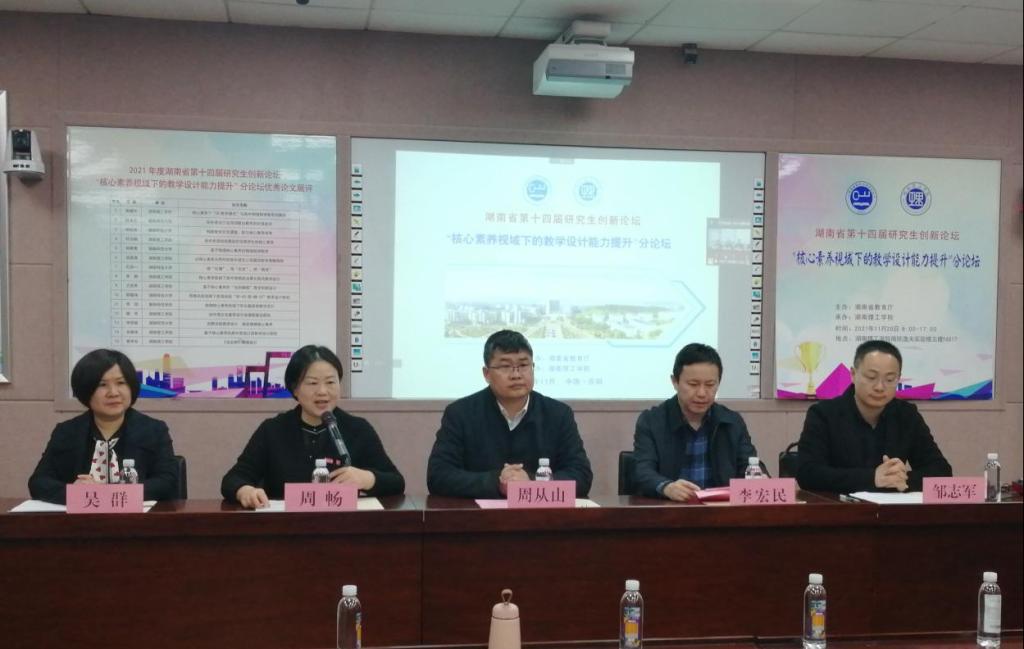 2021年11月20日,公司举办湖南省第十四届研究生创新论坛“核心素养视域下的教学设计能力提升”分论坛学术报告和成果展示活动,研究生院经理周从山教授、李丽荣书记,公司党委书记周畅、经理李宏民、党委副书记李科敏、副经理邹志军等领导出席活本次动,来自浙江师范大学、湖南师范大学、湖南科技大学、湖南工业大学、吉首大学、韦德官方网站、衡阳师范公司等高校,以及岳阳市教科院、岳阳楼区教科院的200余名专家、老师和研究生参加本次活动,周畅主持开幕式。该论坛由湖南省教育厅举办,韦德官方网站承办,bevictor伟德官网具体落实。