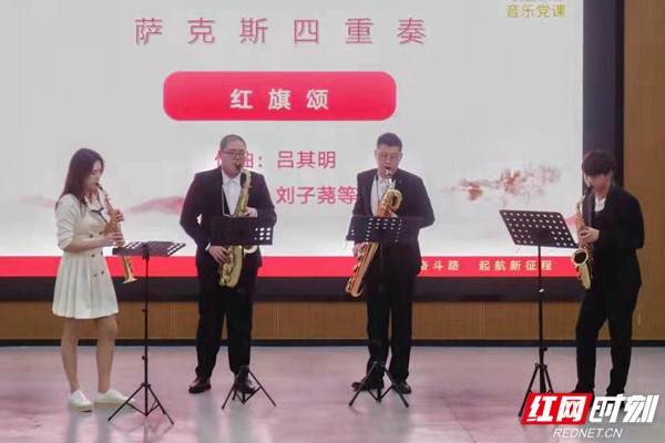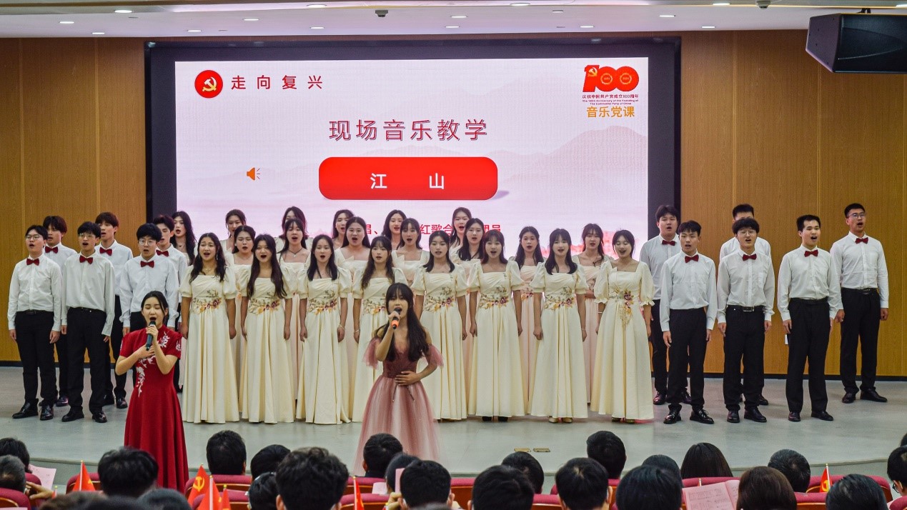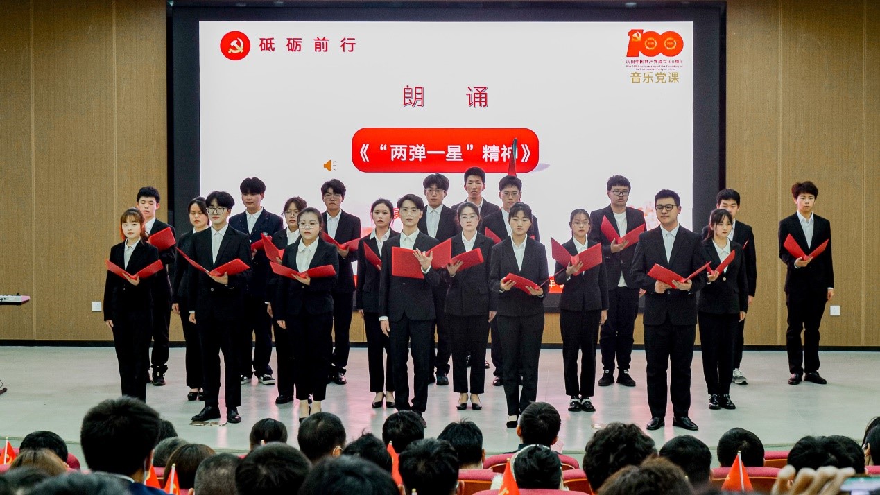 党课正式开始,黄皓华将党的百年历史分为“筚路蓝缕”“ 砥砺前行”“ 春潮澎湃”“ 走向复兴”四个阶段,深情讲述党在百年奋斗中哪些激情燃烧的岁月,通过音乐公司师生演绎的《浏阳河》《游击队之歌》《春天的故事》《我和我的祖国》《江山》一首首激扬的歌曲,bevictor伟德官网员工朗诵的《“两弹一星”精神》等艺术形式,让我们重新定义时代强音。革命历史舞蹈,党史互动问答更是打造全新党课形式,在场党员和入党积极分子无不感受到其中坚定的信仰和信心,沉浸在这场音乐旅途中。