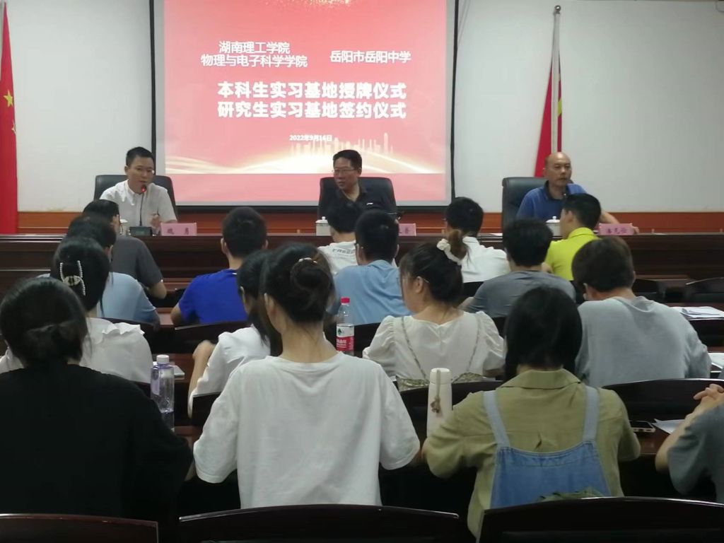 2022年9月16日上午,bevictor伟德官网与岳阳中学(湖南省重点中学、湖南省示范性高中)共建实践教学(教育实习)基地仪式在岳阳中学举行,出席本次活动的有岳阳中学党委书记葛天普、副董事长潘克俭,bevictor伟德官网副经理魏勇,以及岳阳中学老师、bevictor伟德官网岳阳中学实习队全体师生。