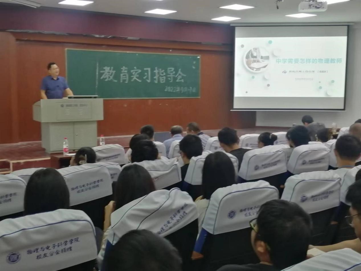 2022年9月17日上午,公司在物电楼学术报告厅隆重举行2022年教育实习指导报告会,报告会由魏勇副经理主持,李科敏副书记、李照宇、李奇云等教师,以及2019级物理学(教师教育)专业本科生、2021级学科教学(物理)专业研究生,共120余人参加。