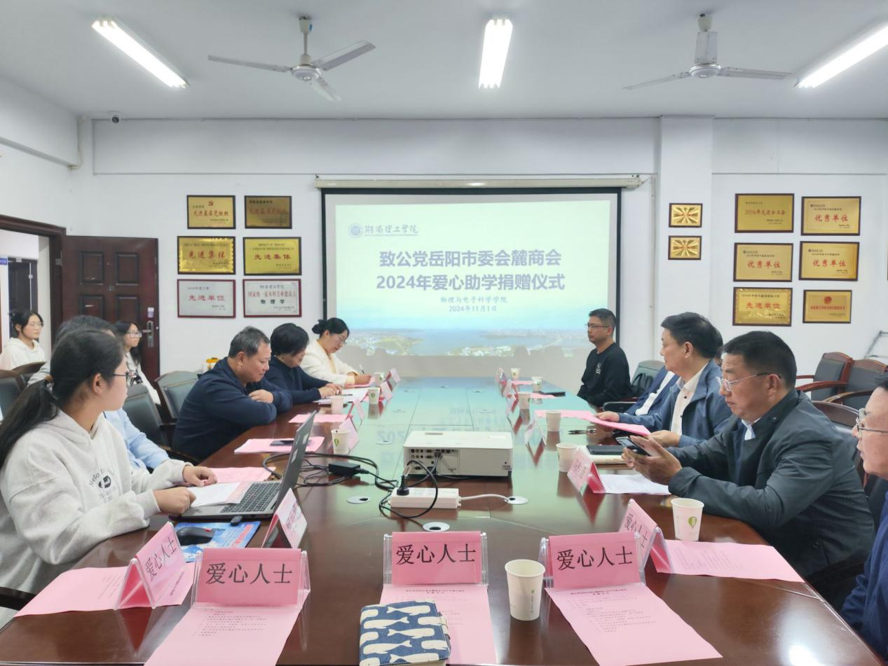 2024年11月1日下午,致公党岳阳市委会麓商会爱心助学捐赠仪式在bevictor伟德官网6205会议室举行。岳阳市政协副主席、致公党岳阳市委会主委李文、致公党岳阳市委会专职副主委谢模满、麓商会会长彭中文、秘书长陈浩章等企业家一行,韦德官方网站教育基金会理事长汤福球、韦德官方网站员工联络中心主任、基金会副理事长陈超文、公司党委书记周畅、副书记石红芳等出席。周畅主持。