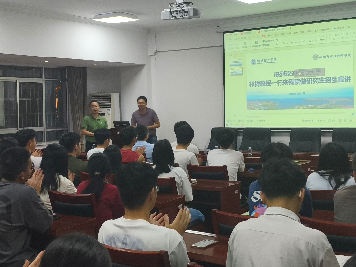 6月11日晚,湘潭大学物理与光电工程公司副经理祁祥、湖北工业大学理公司副经理、博士生导师马新国莅临公司开展硕士研究生招生宣讲活动。2022、2023级50多名有考研意向的员工参加。副经理邹志军主持,公司党委委员李昶与会。