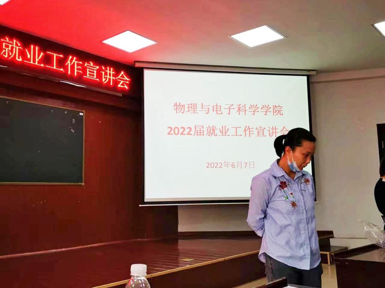 为响应党和国家号召,帮助2022届毕业生就业,并为2019级电子类员工提前做好职业规划,6月7日下午,公司邀请广州粤嵌通信科技股份有限公司湖南分公司朱容总经理、黄亚和余婕老师,在6号教学楼学术报告厅,分别举行就业工作和职业规划宣讲会。党委书记周畅、副书记李科敏、副经理魏勇、就业专干姚世鹏参加。李科敏主持。