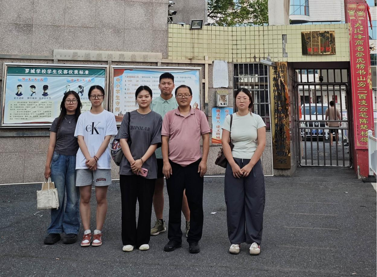 李奇云在溆浦一中与实习生贺琪(左二)及指导教师