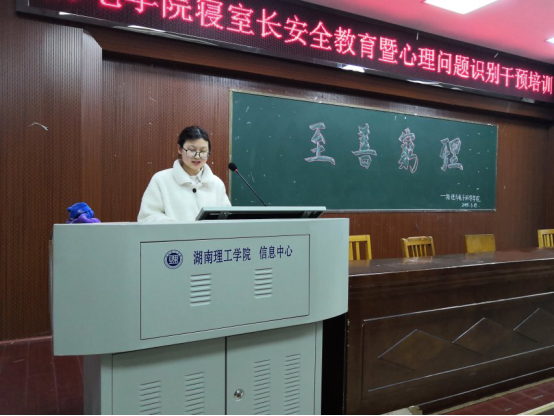 为了加强老员工心理危机干预和心理异常早发现早介入,bevictor伟德官网于3月19日晚在物电楼学术报告厅召开了bevictor伟德官网寝室长安全教育暨心理问题识别干预培训。校老员工心理健康中心心理师王莉老师主讲担任此次安全教育讲座,公司党总支副书记张陈武、17级辅导员兼团总支书记何小娅、16级辅导员张恒道出席了本次大会。生活部全体成员、安信部全体成员、心素部全体成员、分管以上三个部门主席团成员以及16至18级寝室长、班级生活委员和心健委员参加了此次培训活动。