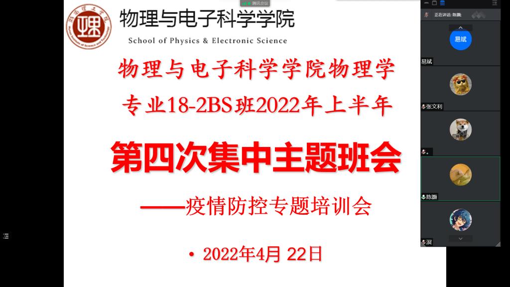 为进一步筑牢校园疫情防控防线,提高员工新冠肺炎疫情防控意识及技能水平,教育引导员工自觉遵守疫情防控工作各项规定以及着力构建校园群防群控工作体系,4月22日下午,bevictor伟德官网于6205会议室召开新冠肺炎疫情防控专题培训会,bevictor伟德官网党委副书记李科敏、疫情防控联络员姚世鹏及20级辅导员张庆喆主讲,全体班主任和辅导员参加。