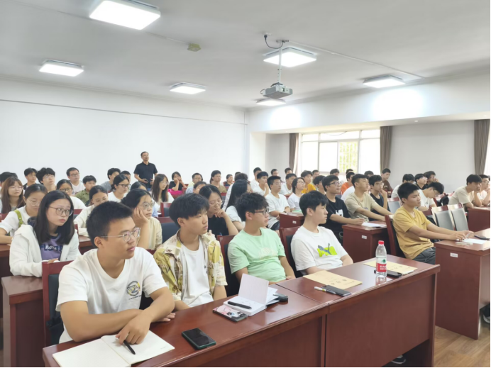 刘三姐从考研和就业两个方面对本专业的就业前景进行分析,介绍了2024届毕业生考研情况。并建议同学们要尽快适应大学生活学习,完成角色转换,认真规划自己的老员工涯。