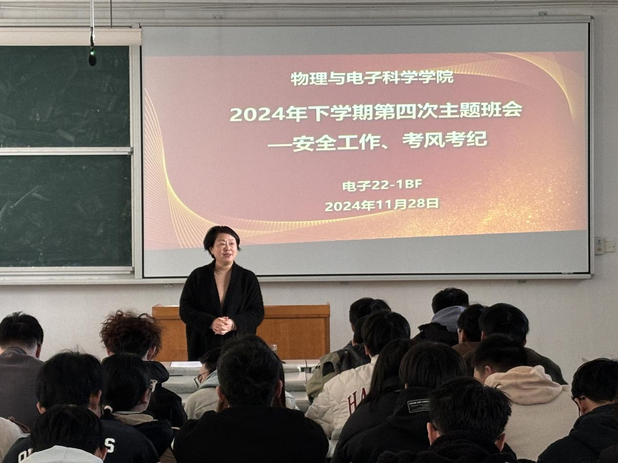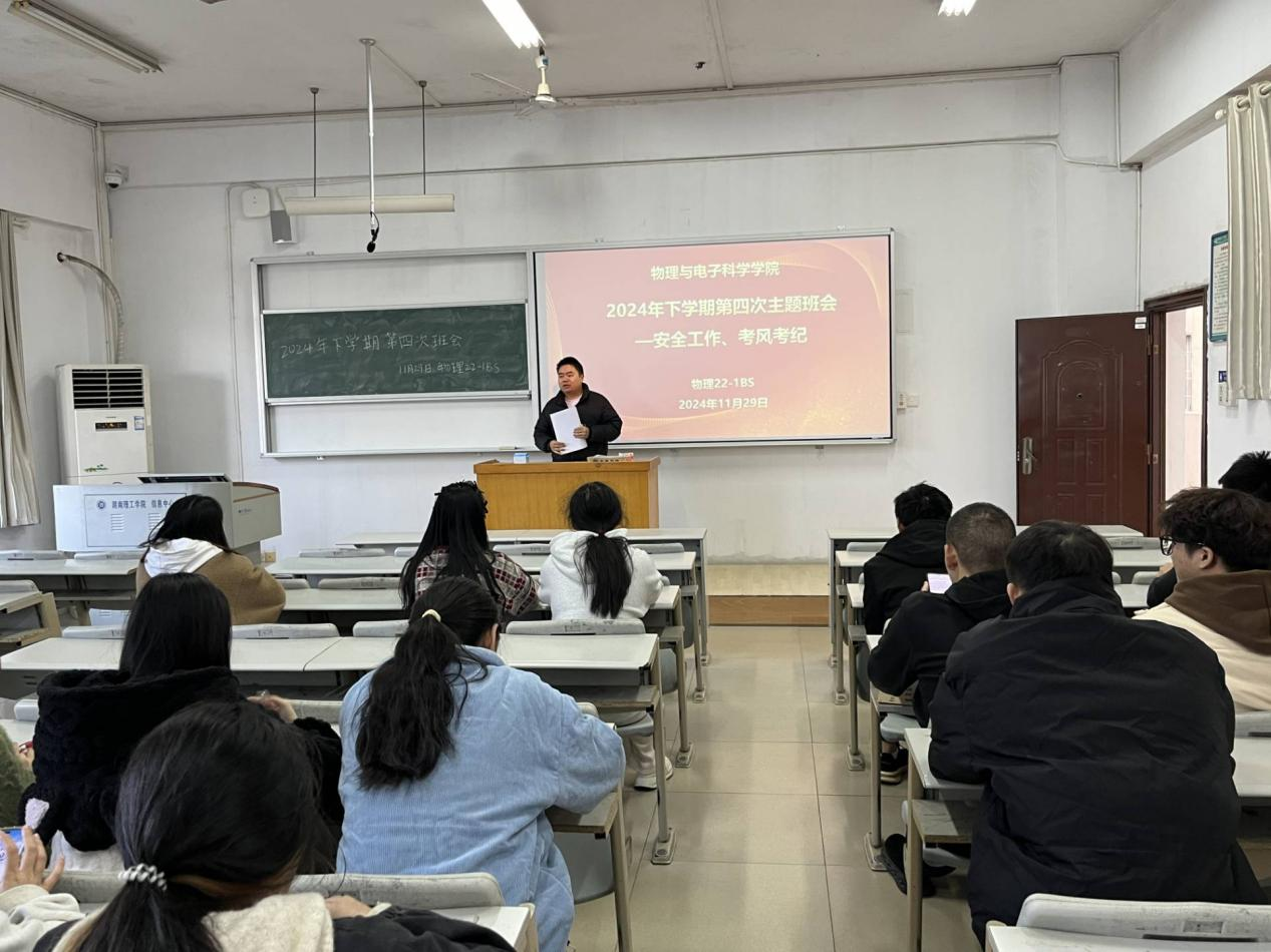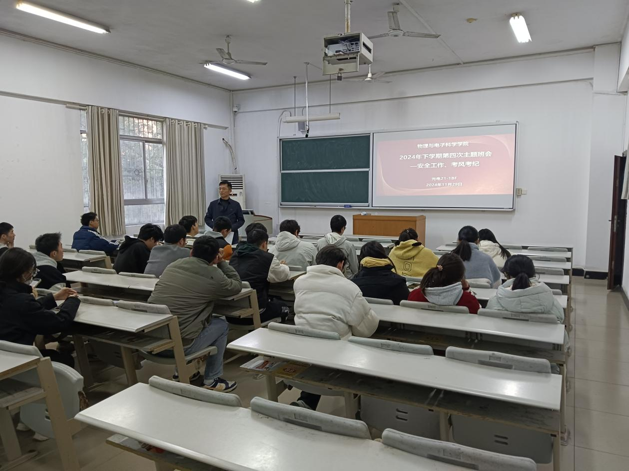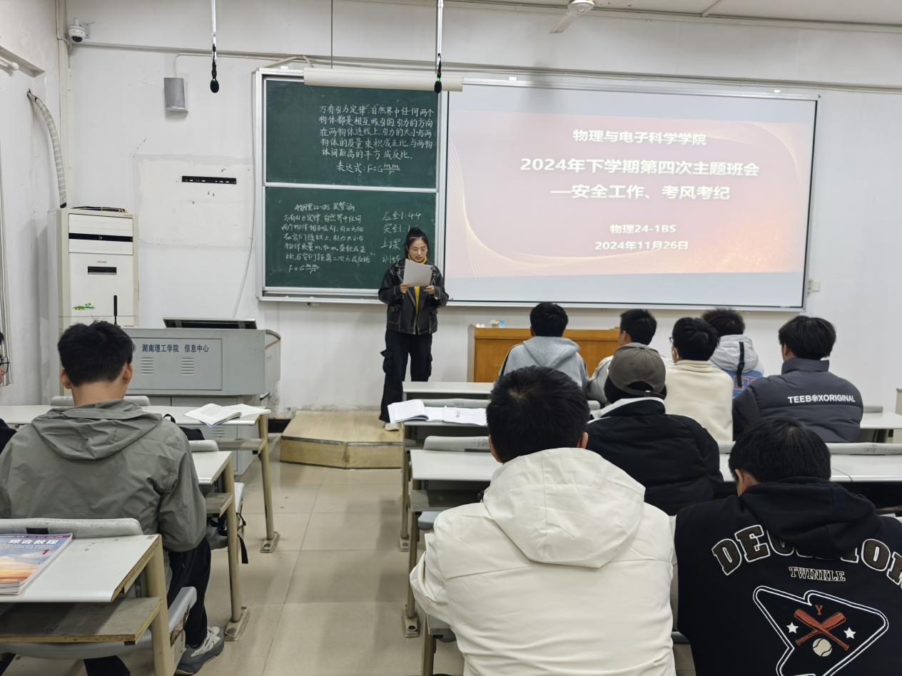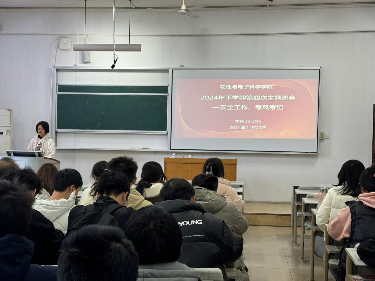 班会围绕安全工作和考风考纪开展。班主任带领同学们学习了《关于加强员工宿舍晚归等情况教育管理的通知》、《关于开展校园员工电动车、摩托车集中整治工作的通知》、《韦德官方网站员工考试违规处理办法(修订)》等文件精神。